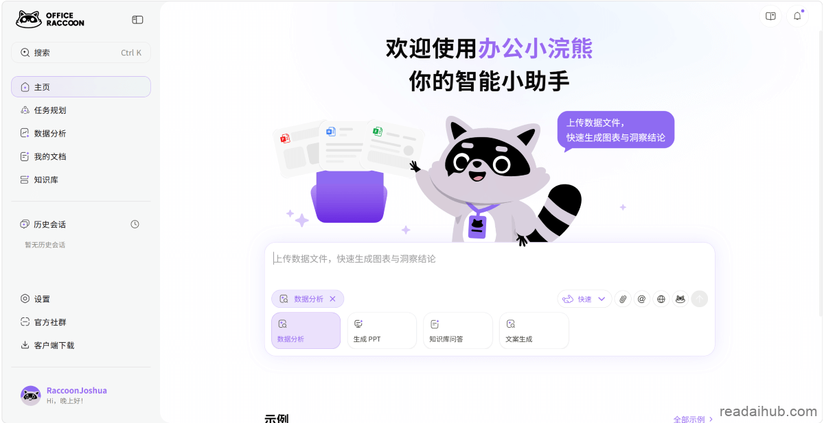 1、小浣熊 office.xiaohuanxiong.com/home