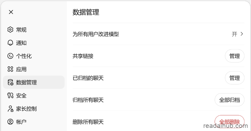 (4)ChatGPT:如果不希望平台将你的内容用于模型训练,可通过设置拒绝。